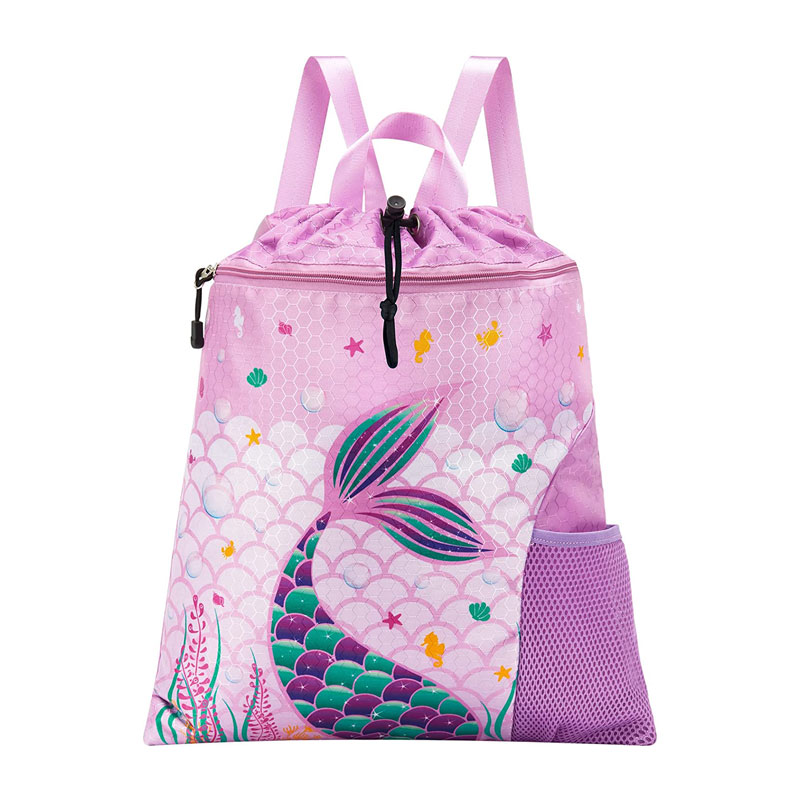የውስጥ እና የኪስ ቦርሳዎች፡- አንዳንድ የሜርማይድ መሳቢያ ከረጢቶች እንደ ቁልፎች፣ መክሰስ ወይም የውሃ ጠርሙስ ያሉ ትናንሽ ነገሮችን ለማደራጀት የውስጥ ኪሶች ወይም ክፍሎች ሊኖራቸው ይችላል።